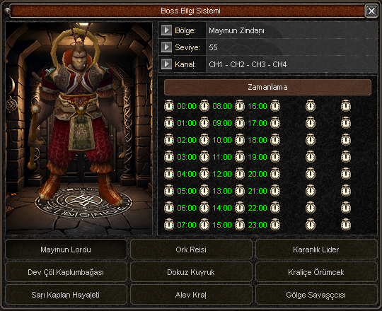 Boss doğma süreleri, lokasyonları ve zamanlama bilgileri ile patron takibi.