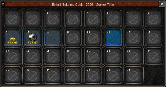 Aylık etkinlik takvimi ile oyuncularınız tüm etkinlikleri takip edebilir.