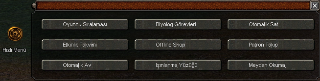 Oyuncuların tüm önemli sistemlere tek tıkla erişebileceği hızlı menü.